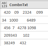 #”Add Col – SplitText by Spaces” = Table.AddColumn(#”Add Col – CombineText”, “SplitTxt”, each Text.Split( [CombnTxt] , ” ” )),