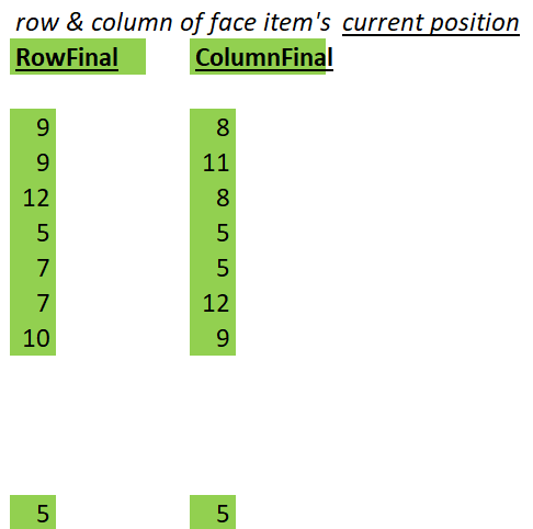 The named range to identify the face’s current location used volatile OFFSET function. I changed it to INDEX. Yes, INDEX can be used for a dynamic range (post) and it isn’t volatile.
