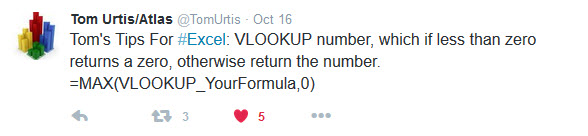 There are many Excel sites full of knowledge. However, I don’t have time to visit everyone’s Excel site every week. Twitter gives me a bird’s eye view of what’s going on and allows me to swoop down to the details in the areas that are the most relevant. Some Tweets contain a formula or tip directly in the tweet while others include a brief description with a link.